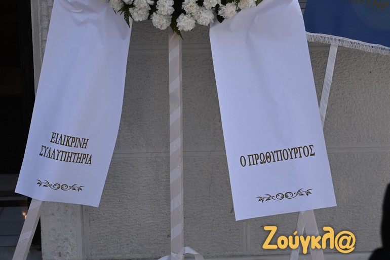 Από το πρωί έξω από την εκκλησία βρισκόταν άγημα της Πολεμικής Αεροπορίας, ενώ δεκάδες είναι τα στεφάνια που εστάλησαν.