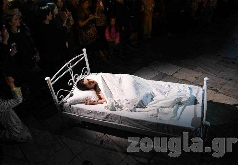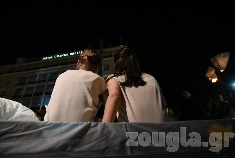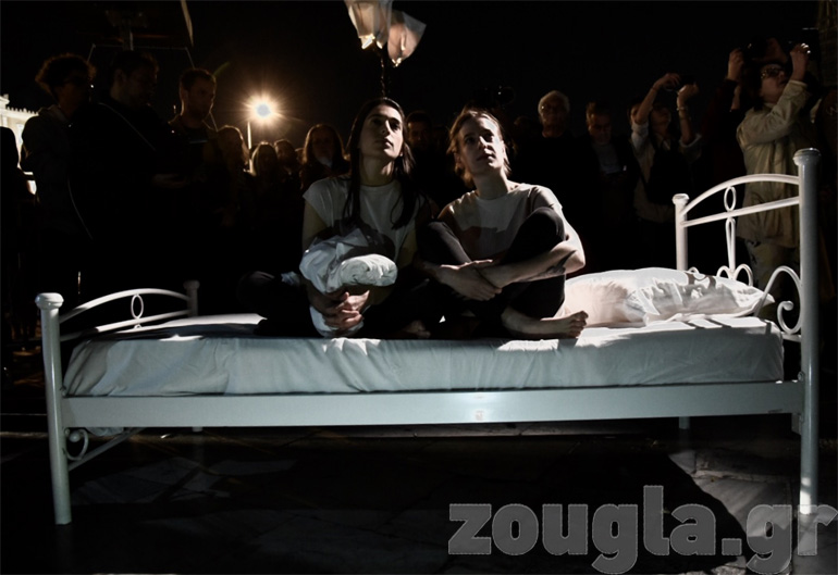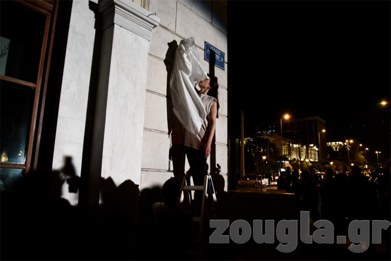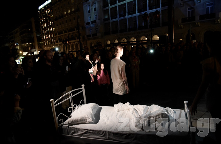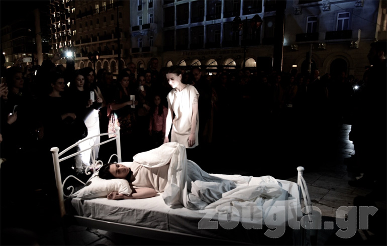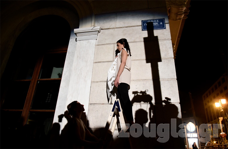 Η διεθνούς φήμης εικαστικός, Μαρία Φραγκουδάκη, «ταρακούνησε» το Σύνταγμα με ένα δρώμενο που θα εξελίχθηκε το βράδυ της Πέμπτης μπροστά από το ξενοδοχείο Μεγάλη Βρετανία.