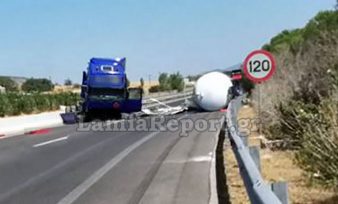 Ο τράκτορας, καρφώθηκε πάνω στο διαχωριστικό, ενώ το βυτίο ανετράπη στο ρεύμα κυκλοφορίας προς Αθήνα. Ο οδηγός σύμφωνα με τις πληροφορίες, δεν τραυματίστηκε.