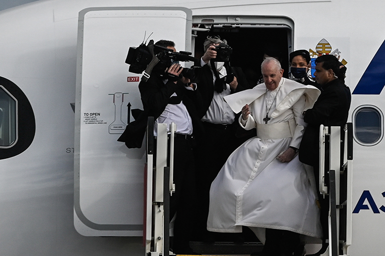 Ο Πάπας Φραγκίσκος ολοκλήρωσε την τριήμερη επίσκεψή του στην Ελλάδα και αποχώρησε, ωστόσο παραπάτησε την ώρα που επέβαινε στο αεροπλάνο, στο αεροδρόμιο «Ελευθέριος Βενιζέλος».
