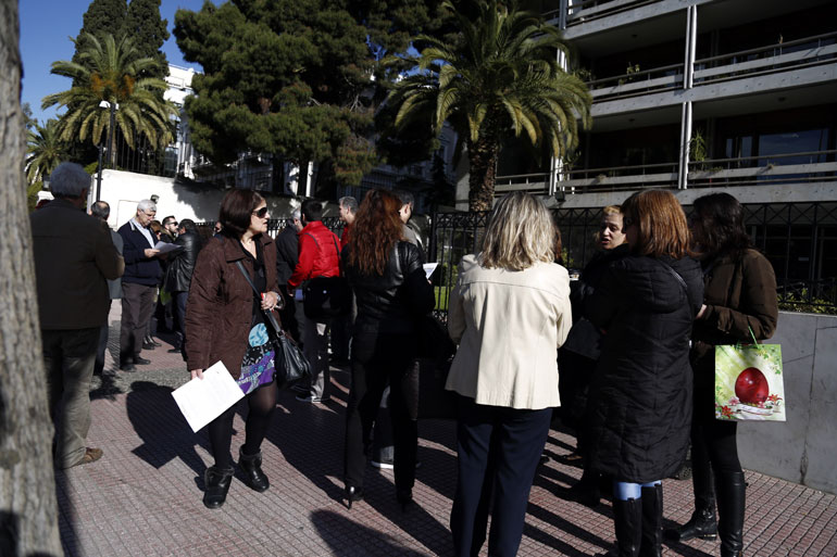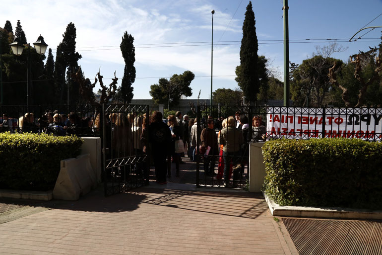 Παράσταση διαμαρτυρίας πραγματοποιούν έξω από το υπουργείο Διοικητικής Μεταρρύθμισης οι απολυμένες καθαρίστριες του Υπουργείου Οικονομικών που ζητούν την επανατοποθέτησή τους.