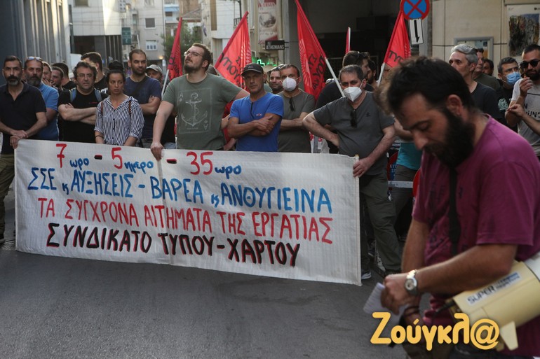 Παράσταση διαμαρτυρίας στα γραφεία του ΣΕΒ πραγματοποίησαν την Πέμπτη το απόγευμα οι Ομοσπονδίες, μαζί με σωματεία από τους κλάδους Γάλακτος – Τροφίμων – Ποτών, Φαρμάκου και Τύπου – Χάρτου, διεκδικώντας την υπογραφή κλαδικών Συλλογικών Συμβάσεων Εργασίας.