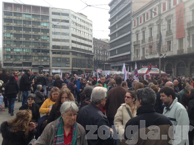 Στην πλατεία Συντάγματος κατέληξε η πορεία διαμαρτυρίας του ΠΑΜΕ που ξεκίνησε στις 11.00 το πρωί του Σαββάτου από την Ομόνοια.
