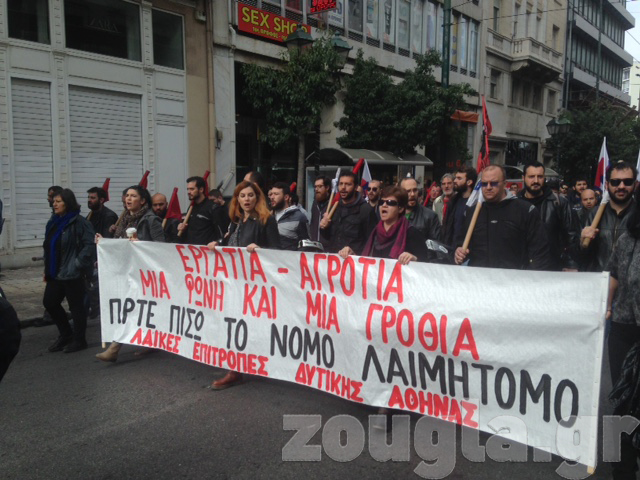 Οι διαδηλωτές ανέβηκαν τη Σταδίου, φωνάζοντας συνθήματα κατά της κυβέρνησης και του υπουργού Εργασίας Γιώργου Κατρούγκαλου. Στόχος της κινητοποίησης είναι η απόσυρση των προωθούμενων αλλαγών στην κοινωνική ασφάλιση και το φορολογικό.