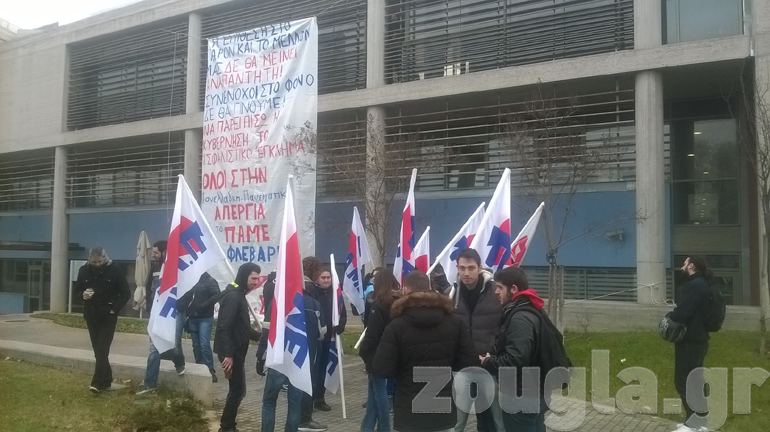 Εν τω μεταξύ, τα μέλη της Επιτροπής Αγώνα Σπουδαστών πραγματοποίησαν νωρίτερα παράσταση διαμαρτυρίας στο κτήριο της Πρυτανείας του Α.Π.Θ. κατά του συστήματος ασφάλισης στα πανεπιστήμια. Στις κινητοποιήσεις μετείχαν 11 φοιτητικοί σύλλογοι (Σχολές Φυσικού, Πολιτικών Μηχανικών, Ηλεκτρομηχανικών, Ιστορικού – Αρχαιολογικού κ.α.).