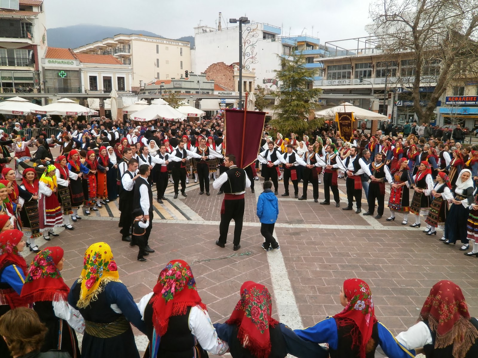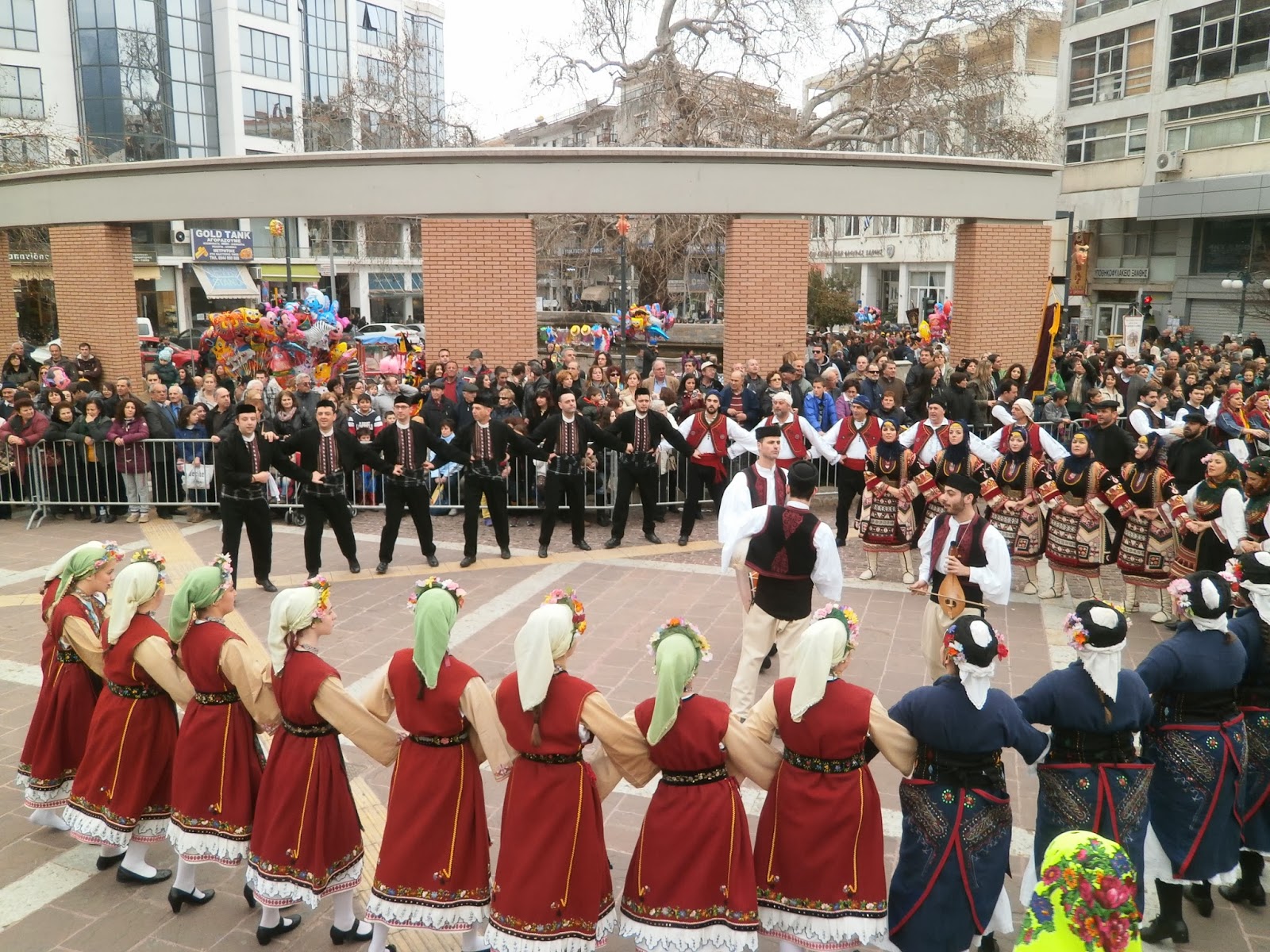 Ακολούθως ο χορός συνεχίστηκε με τη συνοδεία ζωντανής μουσικής στην ειδική εξέδρα που έχει τοποθετηθεί μπροστά ακριβώς από το ρολόι της πόλης με το συγκεντρωμένο πλήθος να παρακολουθεί και να καταχειροκροτεί τους χορευτές, μικρούς και μεγάλους.