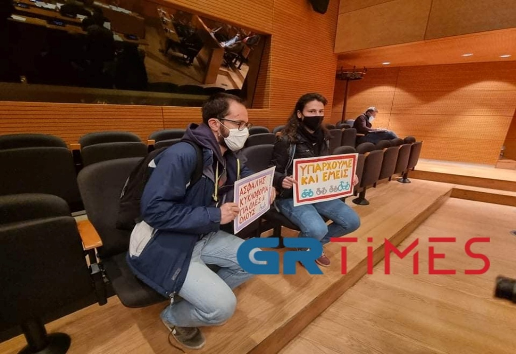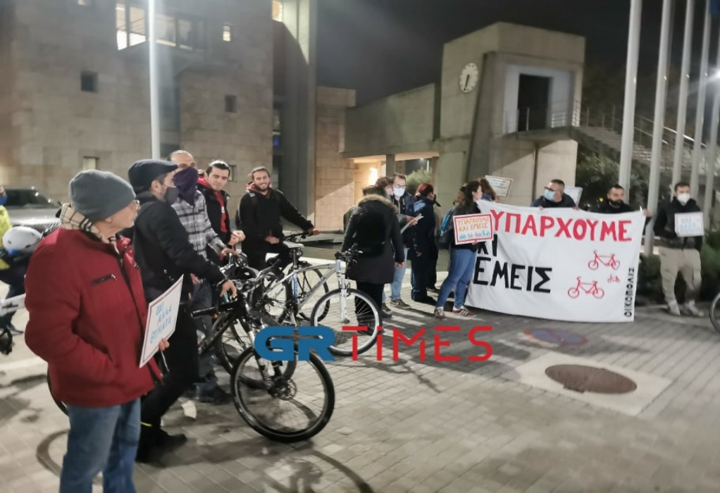 «Υπάρχουμε κι εμείς», «Σεβασμός και στήριξη της ποδηλατοκίνησης» ήταν τα κεντρικά συνθήματα της ποδηλατικής παρέμβασης που πραγματοποίησαν μέλη συλλογικοτήτων και οργανώσεων έξω από το δημαρχιακό μέγαρο Θεσσαλονίκης με αφορμή την ειδική συνεδρίαση του δημοτικού συμβουλίου που ξεκίνησε το απόγευμα με θέμα το κυκλοφοριακό.