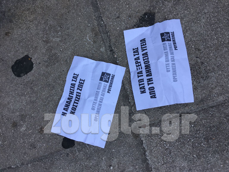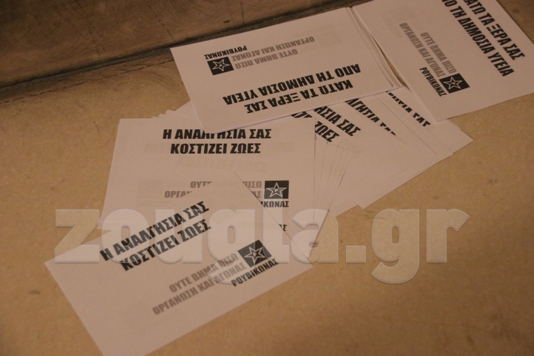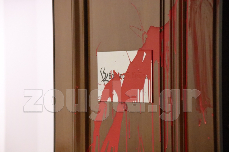 Τα μέλη της συλλογικότητας πέταξαν τρικάκια και μπογιές, ενώ στη συνέχεια αποχώρησαν. Ένα από τα συνθήματα έγραφε:« Η αναλγησία σας κοστίζει ζωές». Σύμφωνα με πληροφορίες, έγινε μία προσαγωγή.