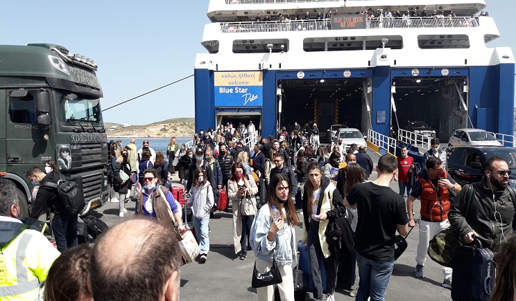 Μόνο με Δεκαπενταύγουστο μπορούν να συγκριθούν οι εικόνες που εκτυλίχθηκαν όταν το πλοίο «Blue Star Delos» κατάπλευσε γεμάτο κόσμο προερχόμενο από Πειραιά.