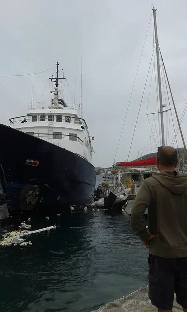 Σύμφωνα με το Λιμενικό, στα δύο ιστιοφόρα δεν υπήρχαν εκείνη τη στιγμή επιβαίνοντες. Το τουριστικό σκάφος προσέκρουσε στα δύο ιστιοφόρα κατά τη διαδικασία χειρισμών πρόσδεσης και πλαγιοδέτησής του στον προβλήτα.