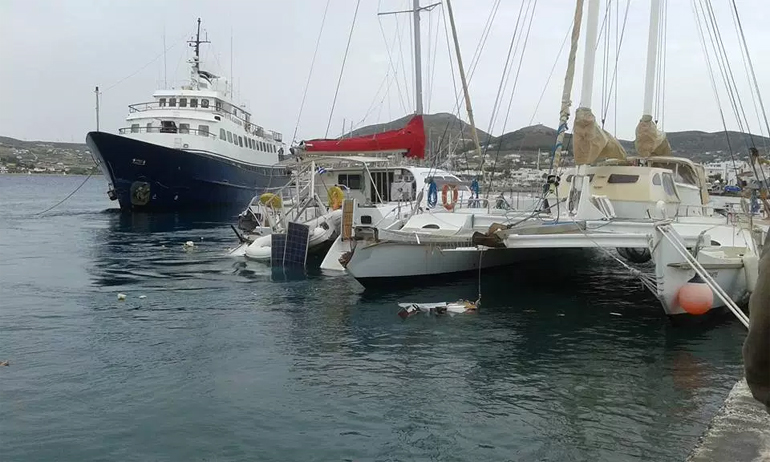 Τουριστικό σκάφος, με 24 επιβάτες και 14 μέλη πλήρωμα, προσέκρουσε το απόγευμα της Κυριακής σε δύο ιστιοφόρα, τύπου καταμαράν, τα οποία βρίσκονταν δεμένα στον προβλήτα, ανατολικά του λιμανιού της Παροικιάς Πάρου.