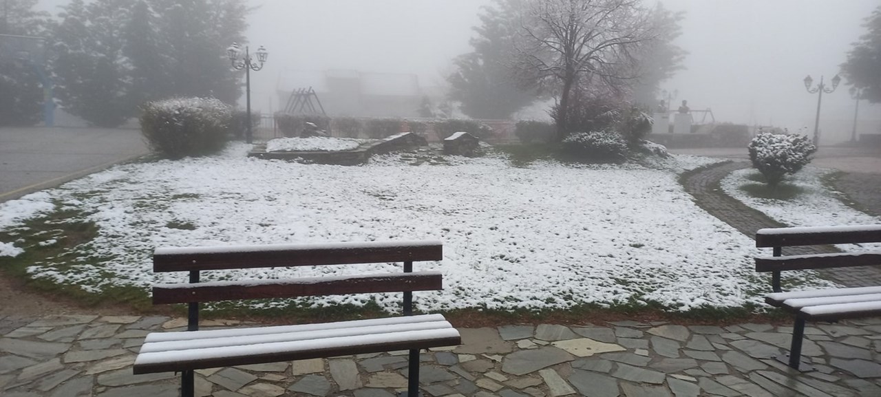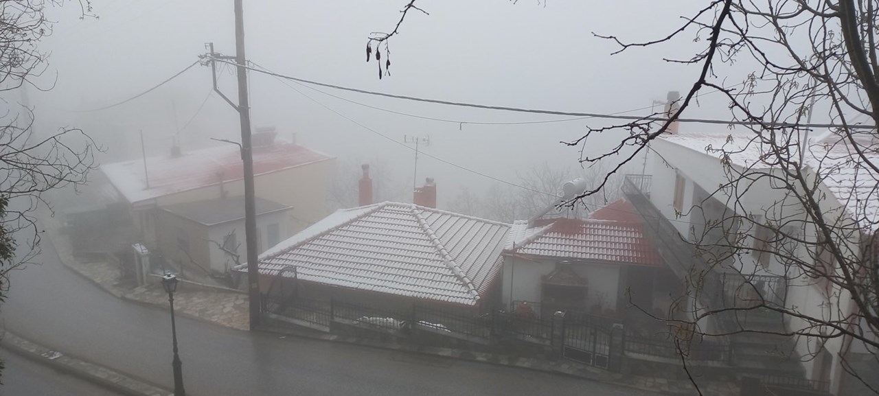 Εικόνες που παραπέμπουν καιρικά σε… παραμονές Χριστουγέννων είναι αυτές που επικρατούν το πρωί της Μεγάλης Τρίτης σε ορεινές περιοχές της Π.Ε. Λάρισας.