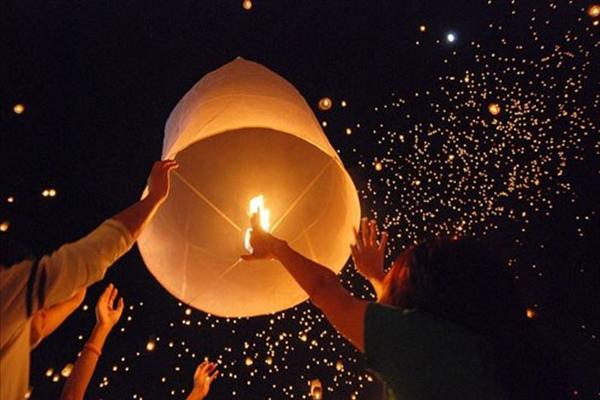 ουρανός από φωτεινά «αερόστατα», τα οποία ανυψώνονται από τους πιστούς κάθε ενορίας.