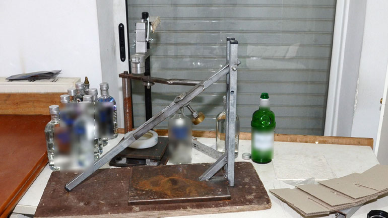 Ειδικότερα, έπειτα από διερεύνηση υπόθεσης παρασκευής, εμφιάλωσης και διακίνησης νοθευμένων αλκοολούχων ποτών, εξακριβώθηκε ότι ο 68χρονος, από κοινού με τον 38χρονο γιο του, είχε εγκαταστήσει παράνομα εμφιαλωτήριο οινοπνευματωδών ποτών στις Αχαρνές και στο Ίλιον, τα οποία και διακινούσαν.