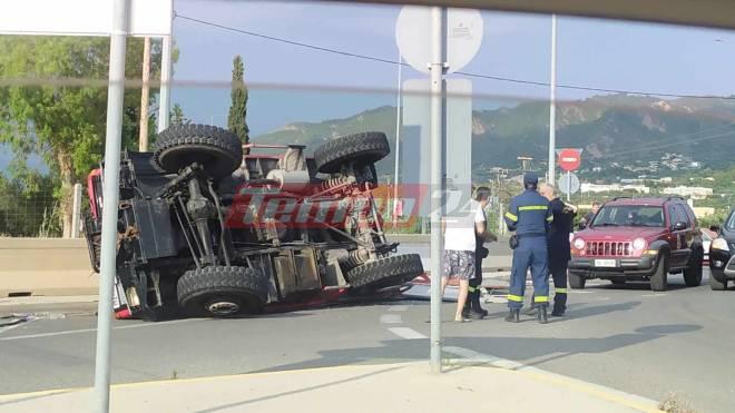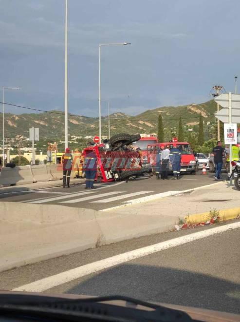Πυροσβεστικό όχημα στο οποίο επέβαιναν δύο πυροσβέστες ανετράπη το απόγευμα του Σαββάτου (8/6) στον κόμβο του Ρίου.