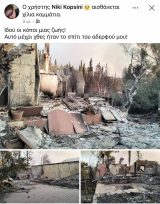Κάτοικοι της περιοχής επιστρέφουν στα σπίτια τους τα οποία σε πολλές περιπτώσεις τα βρίσκουν κατεστραμμένα, με τους κόπους μιας ζωής να έχουν γίνει στάχτη.