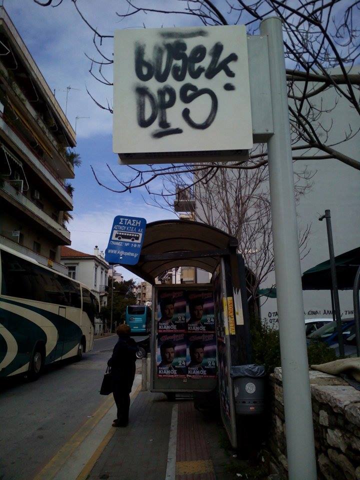 Στο στόχαστρο αγνώστων έπεσε η στάση που βρίσκεται στην συμβολή των οδών Αγίου Ανδρέου και Ζαΐμη, οι οποίοι δεν δίστασαν να την καταστρέψουν μουτζουρώνοντας την.