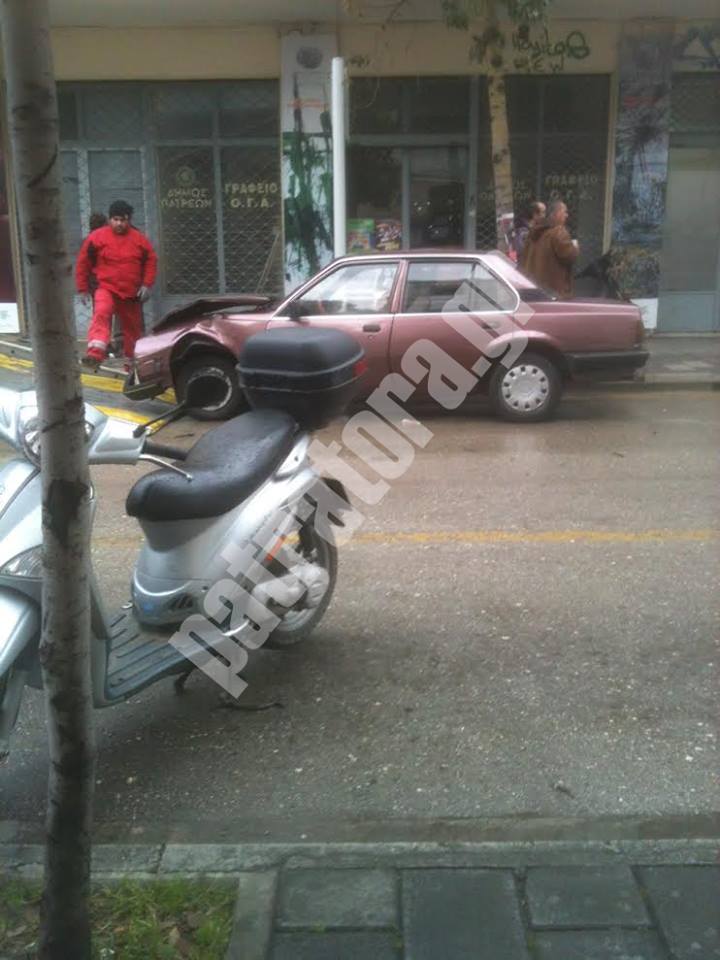 Σφοδρή σύγκρουση δυο αυτοκινήτων σημειώθηκε νωρίς το πρωί της Τετάρτης, στο κέντρο της Πάτρας, με αποτέλεσμα το ένα εξ αυτών να καταλήξει στην τζαμαρία του Γραφείου Εξυπηρέτησης Πολιτών του Δήμου, στη συμβολή των οδών Βότση και Μαιζώνος.