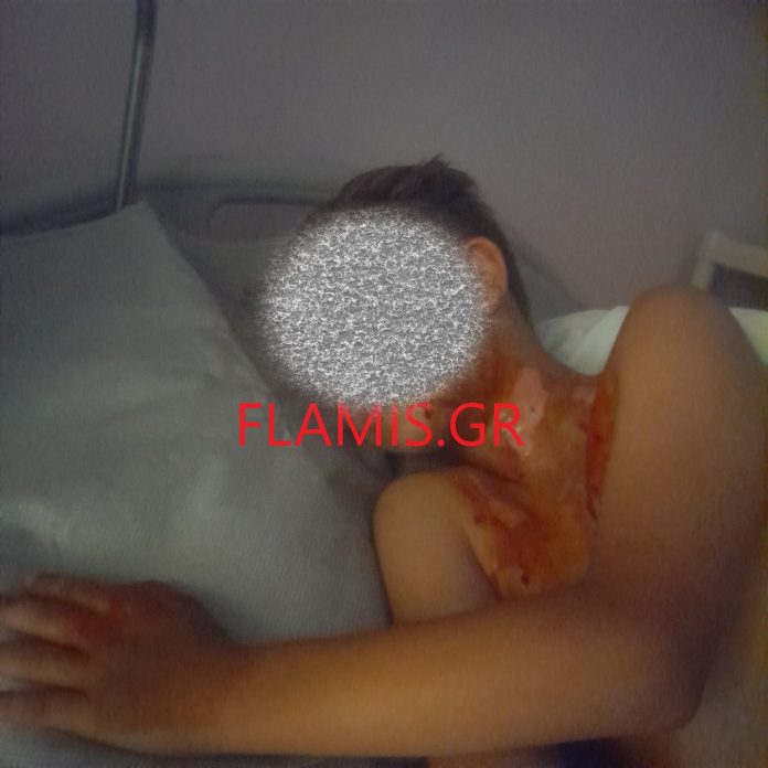 Ο 9χρονος νοσηλεύεται με σοβαρά εγκαύματα στο στήθος αλλά και στο πρόσωπο.