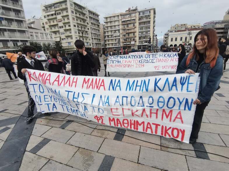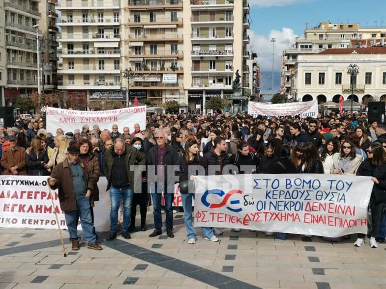 Σε εξέλιξη είναι πορεία στους κεντρικούς δρόμους της Πάτρας για την τραγωδία στα Τέμπη.