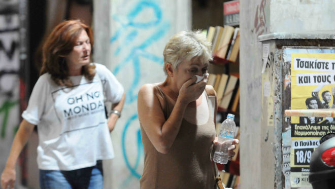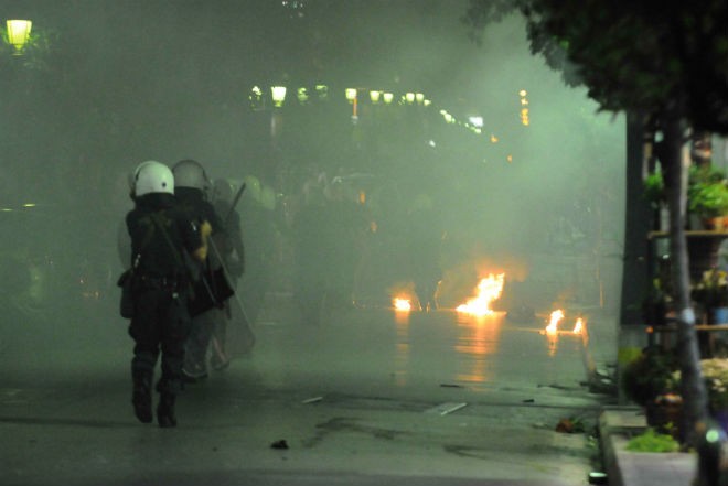 Οι ισχυρές αστυνομικές δυνάμεις που βρίσκονταν στο σημείο απάντησαν κάνοντας χρήση δακρυγόνων και ρίψεις κροτίδων λάμψης.