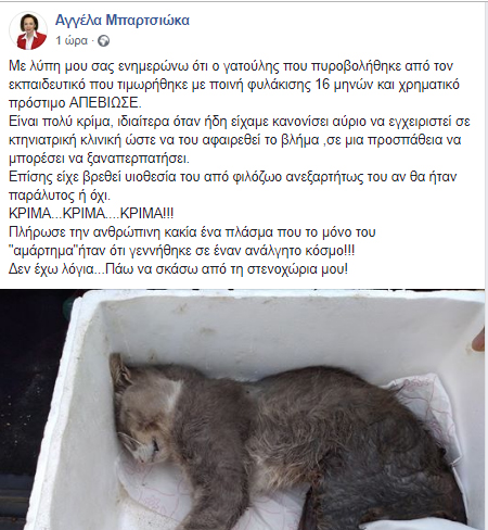 “Τέτοιες συμπεριφορές προσβάλλουν την περιοχή μας, ειδικά όταν προέρχονται από ανθρώπους της εκπαίδευσης” τονίζει ο φιλοζωικός σύλλογος Λαμίας, που βρέθηκε στα δικαστήρια προκειμένου να “υπερασπιστεί” το γατάκι.