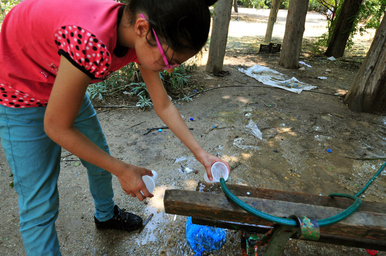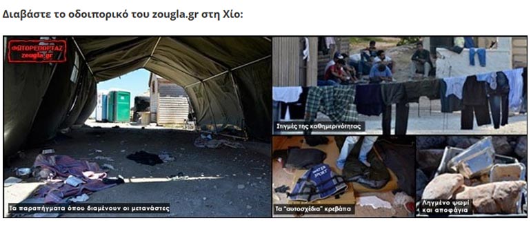 O φακός του zougla.gr απαθανάτισε στιγμές από τον αγώνα των μεταναστών για επιβίωση. Καθώς εισέρχεται κάποιος στον πρόχειρο καταυλισμό, αντικρίζει δύο μόλις χημικές τουαλέτες και λιμνάζοντα νερά, από όπου αναδίδεται έντονη οσμή.