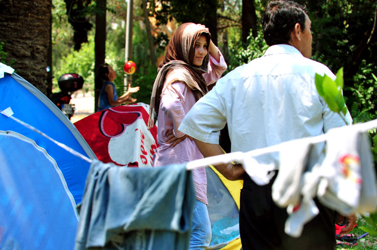 Ταλαιπωρημένα πρόσωπα, ρημαγμένα από τις κακουχίες και τις δυσκολίες της ζωής, και εικόνες εγκατάλειψης βλέπει τις τελευταίες μέρες όποιος τύχει να περάσει από το Πεδίον του Άρεως και τον καταυλισμό των προσφύγων.