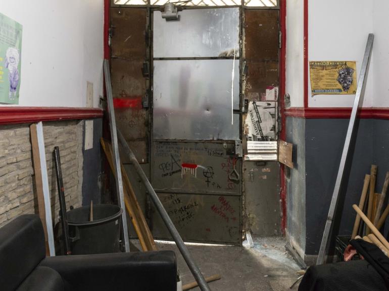 «Εντός του κτιρίου βρέθηκαν τέσσερα άτομα (δύο αλλοδαποί άνδρες, μία αλλοδαπή γυναίκα και μία Ελληνίδα), οι οποίοι προσήχθησαν στη Διεύθυνση Ασφάλειας Αττικής.