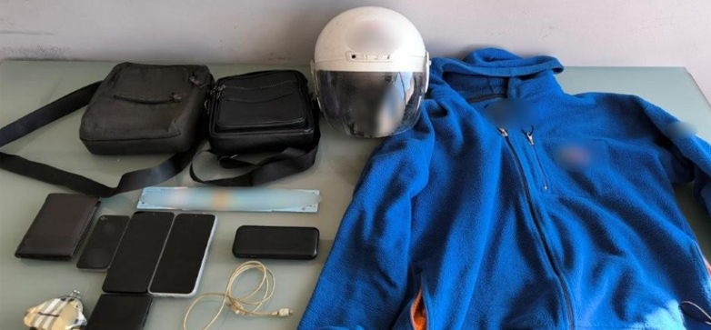 Σε έρευνα στην οικία του, οι αστυνομικοί εντόπισαν και κατέσχεσαν κλοπιμαία, μεταξύ των οποίων tablet, κινητό τηλέφωνο -που ήδη αποδόθηκαν στους ιδιοκτήτες τους- καθώς και πορτοφόλια και δύο τσαντάκια.