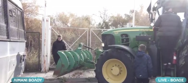 Τρακτέρ από το μπλόκο Αλμυρού στο λιμάνι του Βόλου