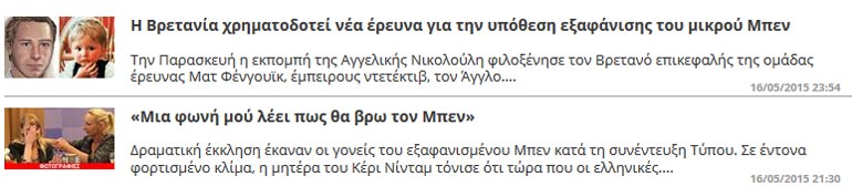 Συμφωνα με πληροφορίες της εφημερίδας «Espresso», υπάρχουν πέντε περιπτώσεις τις οποίες «σκανάρουν» οι Βρετανοί αστυνομικοί με την ΕΛ.ΑΣ και εντοπίζονται σε Ημαθία (δύο περιπτώσεις), Λάρισα, Μαρμαρίδα της Τουρκίας και Θεσσαλονίκη. Η τελευταία περίπτωση, κατά τις ίδιες πληροφορίες, προέκυψε από φωτογραφία που στάλθηκε στην εκπομπή της Αγγελικής Νικολούλη.