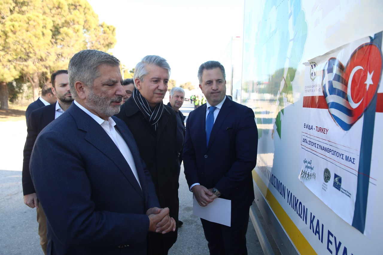 Από την πλευρά του ο Τούρκος Πρέσβης στην Αθήνα ÇağatayErciyes, δήλωσε: «Στην Τουρκία έχουμε ένα ρητό: «Ο φίλος στην ανάγκη φαίνεται» και από την πρώτη στιγμή ο ελληνικός λαός έδειξε την αλληλεγγύη του προς εμάς. Είμαστε πραγματικά ευγνώμονες. Ευχαριστούμε τον ελληνικό λαό για την δική του βοήθεια. Μια βοήθεια που συγκεντρώθηκε από την Περιφέρεια, τους δήμους και τις ομάδες εθελοντών. Ευχαριστώ θερμά όλους όσους συμμετείχαν σε αυτή την προσπάθεια, δημάρχους, δημοτικούς συμβούλους, τοπικές αρχές και το ελληνικό υπουργείο Εξωτερικών. Ευχαριστώ και κάθε άλλο υπουργείο το οποίο συμμετείχε σε αυτή την πολύτιμη προσπάθεια. Είναι δύσκολοι καιροί αυτοί για την Τουρκία και πραγματικά λαμβάνουμε μία βοήθεια την οποία ποτέ δεν θα λησμονήσουμε και σαφώς θα ήθελα να ευχαριστήσω άπαντες για την βοήθεια τους και να τονίσω ξανά ότι είμαστε ευγνώμονες προς όλους».