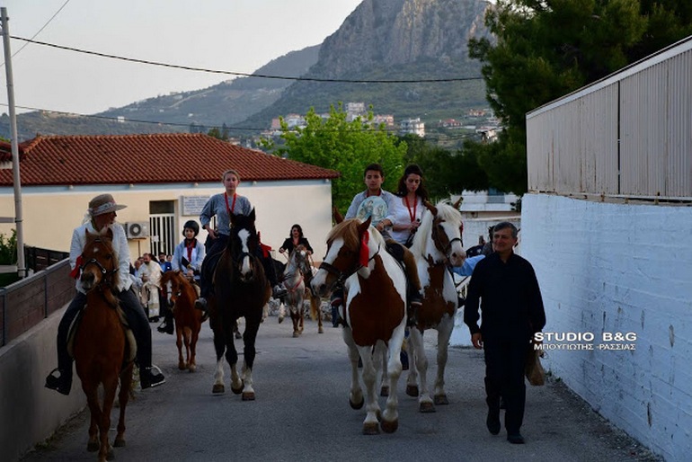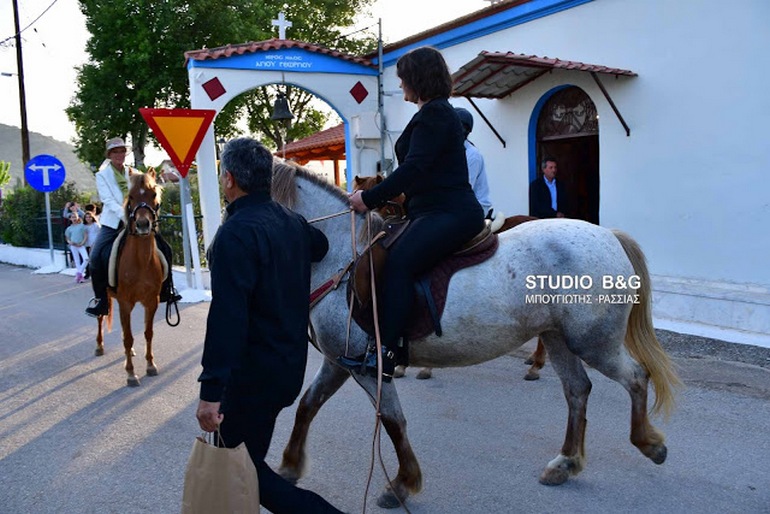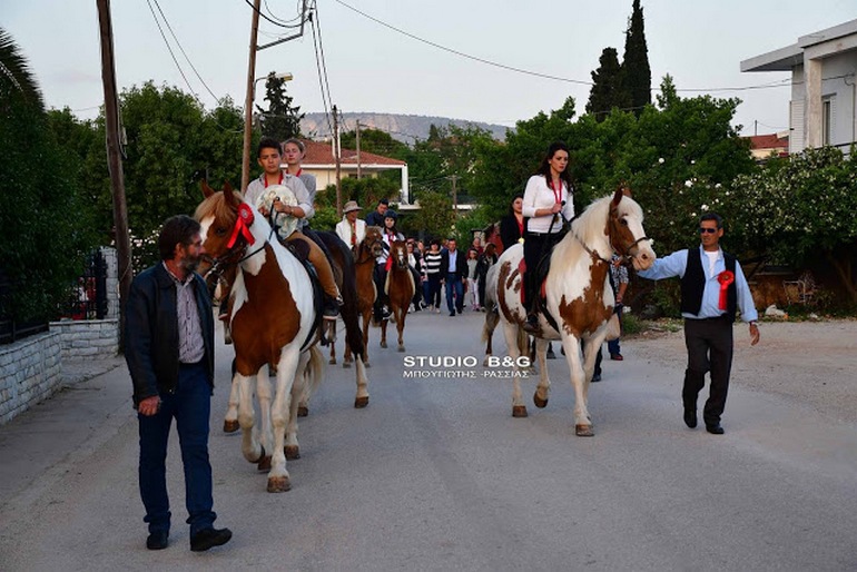 Την παραμονή της εορτής του Αγίου Γεωργίου, φέτος (κινητή εορτή) ανήμερα το Πάσχα την Κυριακή 27 Απριλίου 2019 αναβίωσε για ακόμη μια χρονιά με πρωτοβουλία της τοπικής κοινότητας Λευκακίων του Δήμου Ναυπλιέων στην Αργολίδα, το παλαιό έθιμο της περιφοράς της Ιερής Εικόνας του Αγίου Γεωργίου με τα άλογα.