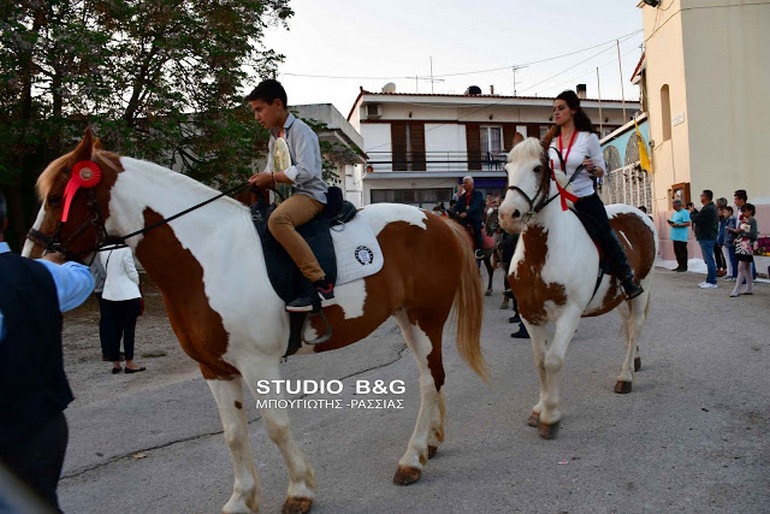 Η πομπή ξεκίνησε από την εκκλησία του χωριού όπου τελείται εσπερινός και ύστερα έφιπποι, γυναίκες και άνδρες πήραν την εικόνα από τον Ιερέα π. Μιχαήλ Καλαμαρά και την περιέφεραν στο χωριό.