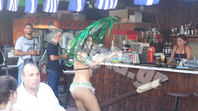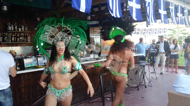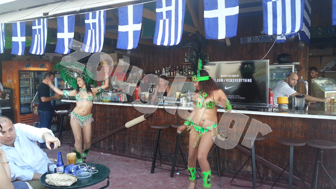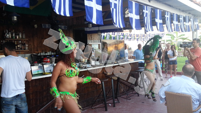 Στο ημίχρονο του αναμέτρησης βραζιλιάνες έδωσαν τον καλύτερο τους εαυτό, λικνίζοντας το σώμα τους στους ρυθμούς της samba.