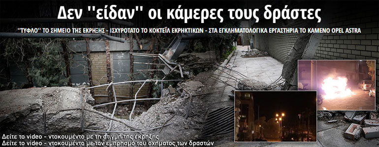 Οι κάμερες στο σημείο είναι πολλές και ενδεχομένως υπάρχει εικόνα των δραστών, χωρίς βεβαίως να φαίνονται τα χαρακτηριστικά των προσώπων τους, ενώ η δενδροστοιχία που βρίσκεται στον χώρο δεν βοηθάει πολύ. Οι βομβιστές θεωρούνται έμπειροι εν αντιθέσει με εκείνους του χτυπήματος που έγινε πριν από έναν μήνα στο σπίτι του αντεισαγγελέα του Αρείου Πάγου Ισίδωρου Ντογιάκου, στον Βύρωνα, όπου ο μηχανισμός δεν εξερράγη από αστοχία. Για την εν λόγω επίθεση μέχρι στιγμής δεν έχει υπάρξει ανάληψη ευθύνης.
