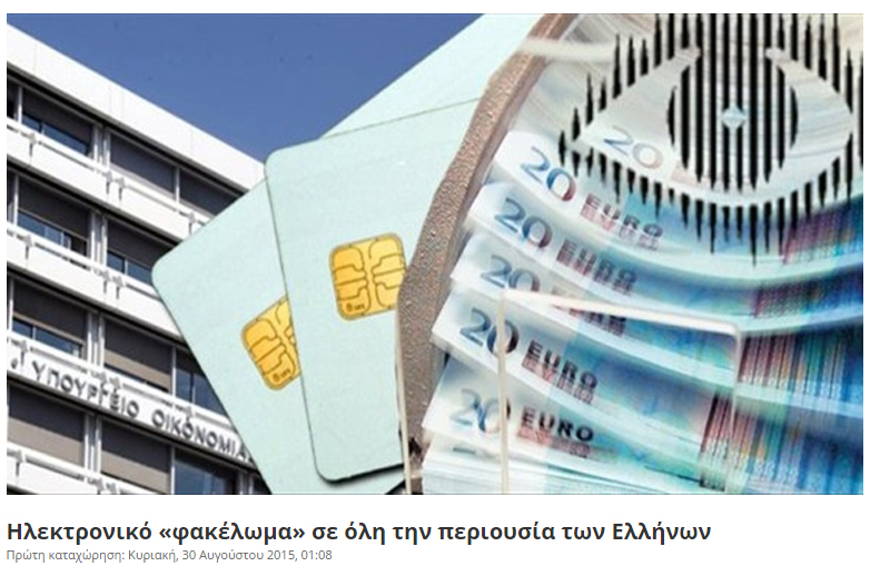 Σύμφωνα με τα όσα σχεδιάζει το οικονομικό επιτελείο, μετά την ψήφιση του νομοσχεδίου, η προθεσμία για να υποβληθούν σε ηλεκτρονική φόρμα όλα τα κινητά και ακίνητα περιουσιακά στοιχεία που κατέχουν οι φορολογούμενοι σε Ελλάδα και εξωτερικό θα είναι μέχρι τον Σεπτέμβριο του 2016.
