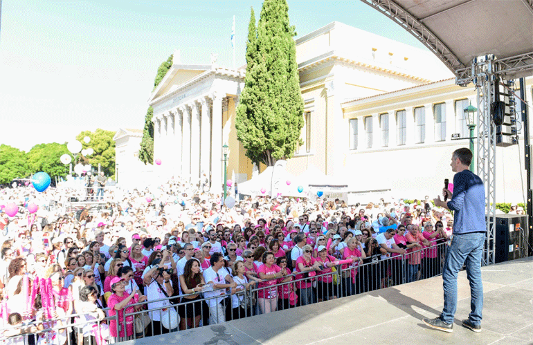 Το κέντρο της Αθήνας υποδέχτηκε την Κυριακή, στο Ζάππειο περισσότερους από 36.000 δρομείς, μικρούς και μεγάλους, οι οποίοι έτρεξαν ενάντια στον καρκίνο του μαστού.