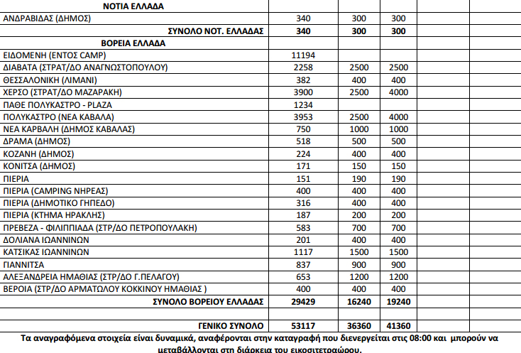 Συνολικά 53.117 πρόσφυγες και μετανάστες βρίσκονται σε διάφορες περιοχές της ελληνικής επικράτειας, σύμφωνα με τη συνοπτική κατάσταση του Συντονιστικού για τη Διαχείριση της Προσφυγικής Κρίσης που δόθηκε στη δημοσιότητα.