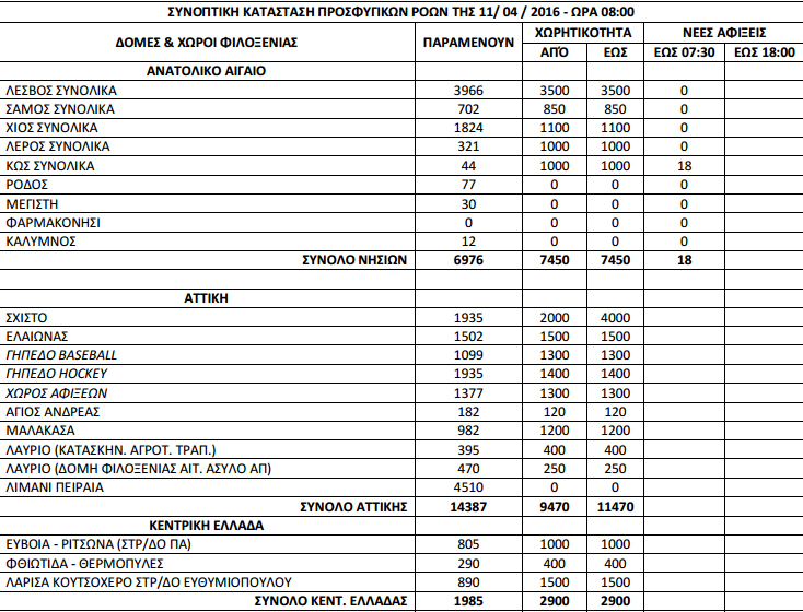 Στην Ειδομένη παραμένουν 11.194, την ώρα που στον Πειραιά ο αριθμός τους διαμορφώνεται σε 4.510.