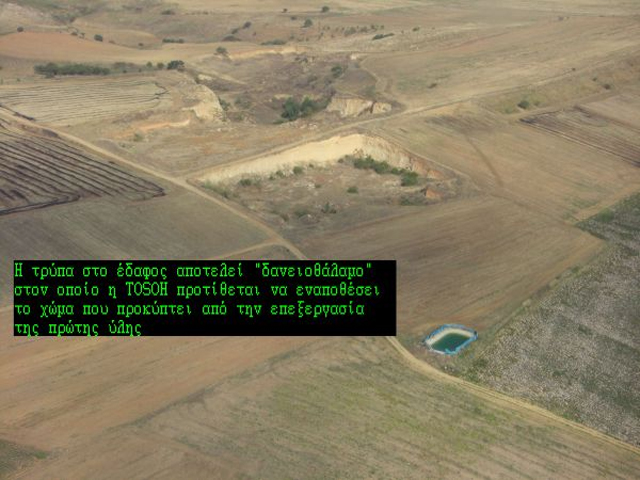 – Πλήρωση του χώρου με το υλικό, το οποίο θα φορτωθεί στις εγκαταστάσεις της «Tosoh», σε φορτηγά ωφέλιμης χωρητικότητας της τάξης των 20 tn, ενώ η απόσταση μεταφοράς του υλικού στο λατομείο είναι της τάξης των 75 km.