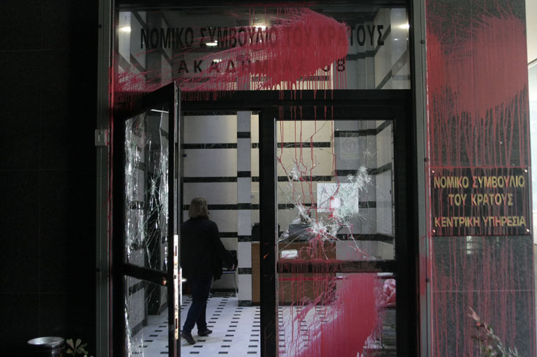Στόχος επίθεσης από αγνώστους έγινε στις 12.45 το μεσημέρι της Πέμπτης το κτήριο όπου στεγάζεται το Νομικό Συμβούλιο του Κράτους, στη συμβολή των οδών Χαριλάου Τρικούπη και Ακαδημίας 68, στο κέντρο της Αθήνας.