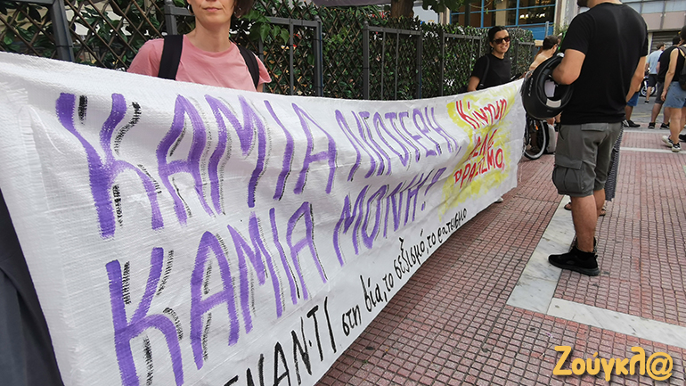 Συγκέντρωση πραγματοποιήθηκε στα Κάτω Πετράλωνα το απόγευμα της Τρίτης, στην πλατεία Αγ. Αικατερίνης, με αφορμή την καταγγελία βιασμού της 50χρονης καθαρίστριας. Στη διαμαρτυρία συμμετέχουν συλλογικότητες της Αριστεράς με πανό και συνθήματα όπως «κάτω τα χέρια από τις γυναίκες» και «σπάμε τη σιωπή ενάντια στην έμφυλη βία».