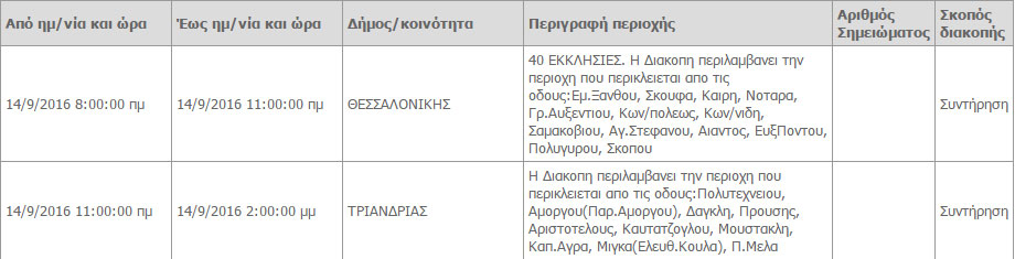 Ποιες περιοχές της Θεσσαλονίκης θα μείνουν σήμερα χωρίς ρεύμα
