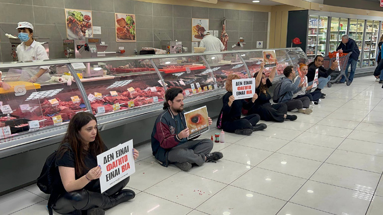 Παρέμβαση σε μεγάλο σούπερ μάρκετ στον Πειραιά έκανε ομάδα ακτιβιστών, διαμαρτυρόμενη για τη «σφαγή του Πάσχα» όπως οι ίδιοι τόνισαν.