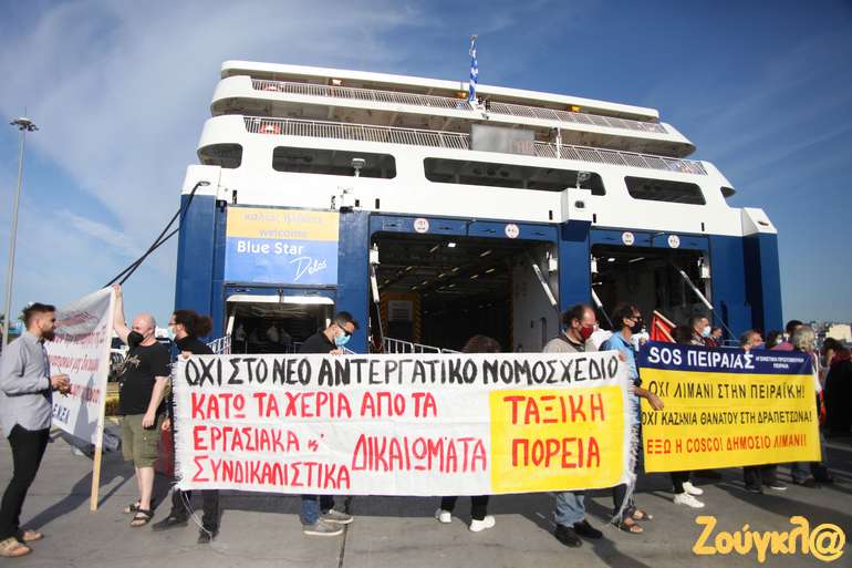 Ουρές και ταλαιπωρία αντιμετώπισαν οι επιβάτες που βρέθηκαν στο λιμάνι του Πειραιά για να φύγουν με το επιβατηγό οχηματαγωγό πλοίο «Blue Star Delos», που ήταν προγραμματισμένο να αναχωρήσει στις 07:25 το πρωί για Θήρα-Πάρο-Νάξο, αλλά παρέμενε δεμένο λόγω της απεργίας της Πανελλήνιας Ένωσης Ναυτών Εμπορικού Ναυτικού. Τελικά η απεργία έληξε και το δρομολόγιο προγραμματίστηκε για τις 9.