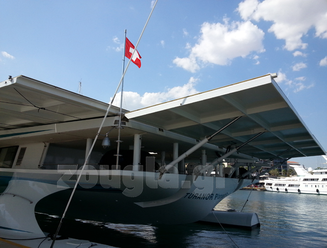 Στη Μαρίνα Ζέας κατέπλευσε το μεγαλύτερο ηλιακό σκάφος του κόσμου, το Turanor PlanetSolar, που κινείται αποκλειστικά με ηλιακή ενέργεια. Το καταμαράν έφτασε στην Ελλάδα στο πλαίσιο αρχαιολογικής αποστολής «Terrassubmersa», που θα πραγματοποιηθεί από το Πανεπιστήμιο της Γενεύης σε συνεργασία με την Ελβετική Αρχαιολογική Σχολή στην Ελλάδα, την Ελληνική Εφορεία Εναλίων Αρχαιοτήτων και το Ελληνικό Κέντρο Θαλασσίων Ερευνών και αφορά στην εξερεύνηση και την τοπογραφική αποτύπωση προϊστορικού οικισμού στην περιοχή της Αργολίδας.