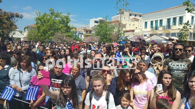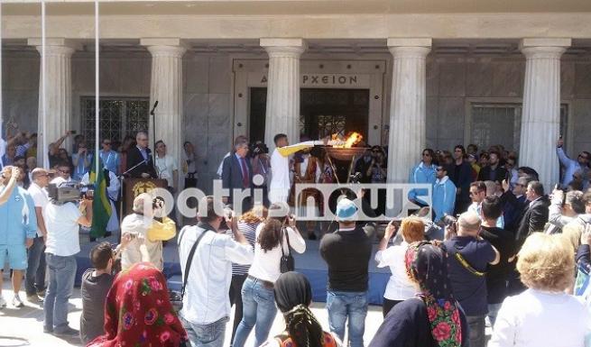 Εκατοντάδες πολίτες, μαθητές και μέλη Πολιτιστικών Συλλόγων του Πύργου υποδέχθηκαν το μεσημέρι της Πέμπτης την Ολυμπιακή Φλόγα.