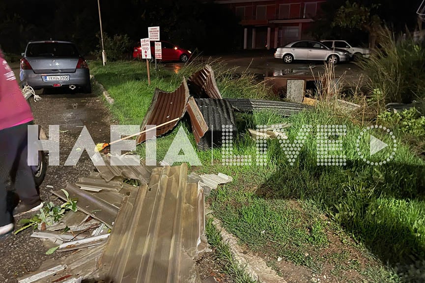 Εκτεταμένες είναι οι ζημιές από τον ανεμοστρόβιλο που πέρασε από το Κατσικάρι προς τις Εργατικές Κατοικίες Κατακόλου, το ΚΤΕΛ και το ξενοδοχείο Λέτρινα.